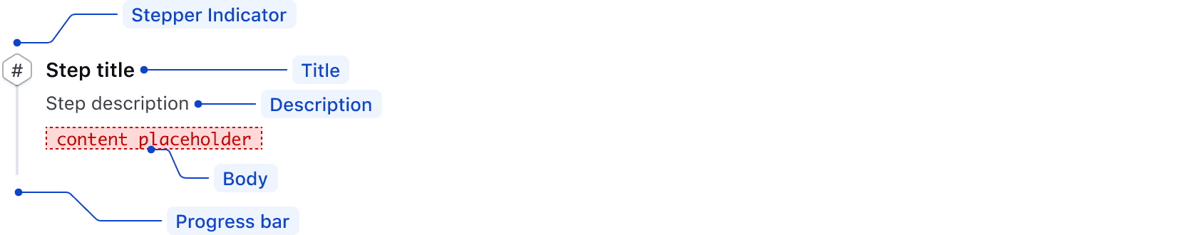 The Stepper List includes a title, an optional description, and a generic slot for content.